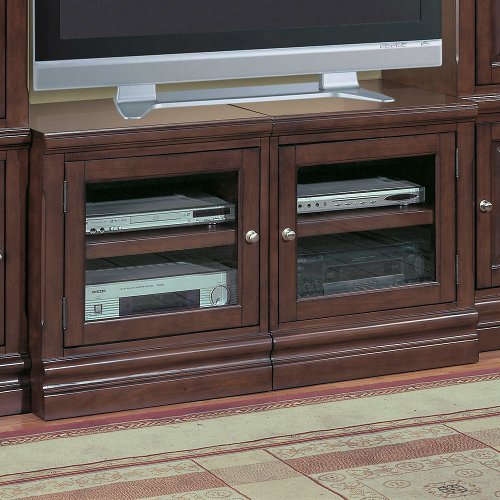 This gorgeous expandable TV console will accommodate TVs up to 62 wide. It features 2 doors, 2 permanent shelves, and 3 expandable shelves. Dimensions: